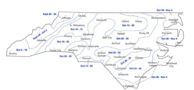 As we approach optimum wheat planting time in North Carolina, below are some tips to follow throughout the season. The weather forecast for the next 10 days has a great outlook for both soybean harvest and the beginning of small grain planting with partly to mostly sunny days and limited chances for showers. Once you have planted make sure to scout fields about 7 to 10 days later to assess population and early weed pressures.