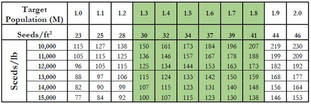 3. Plant your wheat before Thanksgiving. Earlier planted wheat has more chance to be successful than late planted wheat. Begin your wheat planting based on the first date in the planting date map (Figure 1) for your region and continue for up to 21 days after. Follow the seeding rate chart (Table 1) to determine how many pounds of seed per acre to plant based on seed size and target population.